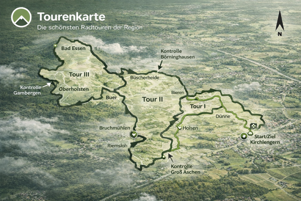 Wir bieten 3 verschiedene ausgeschilderte Strecken (45, 75 & 113 Km) entlang des Wiehengebirge und durch das Osnabrücker Land an. Ca. alle 25 Km gibt es eine Verpflegungstelle, mit ausreichenden Getränken und reichhaltiger Verpflegung.
