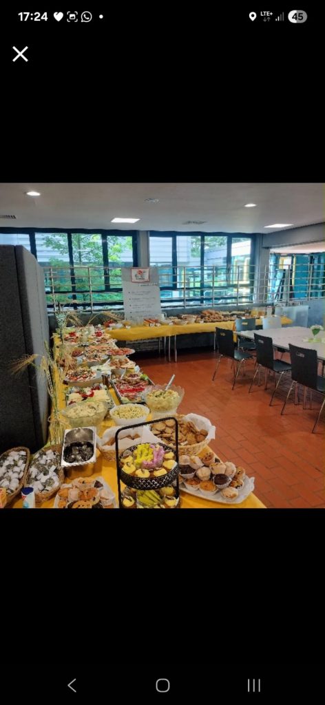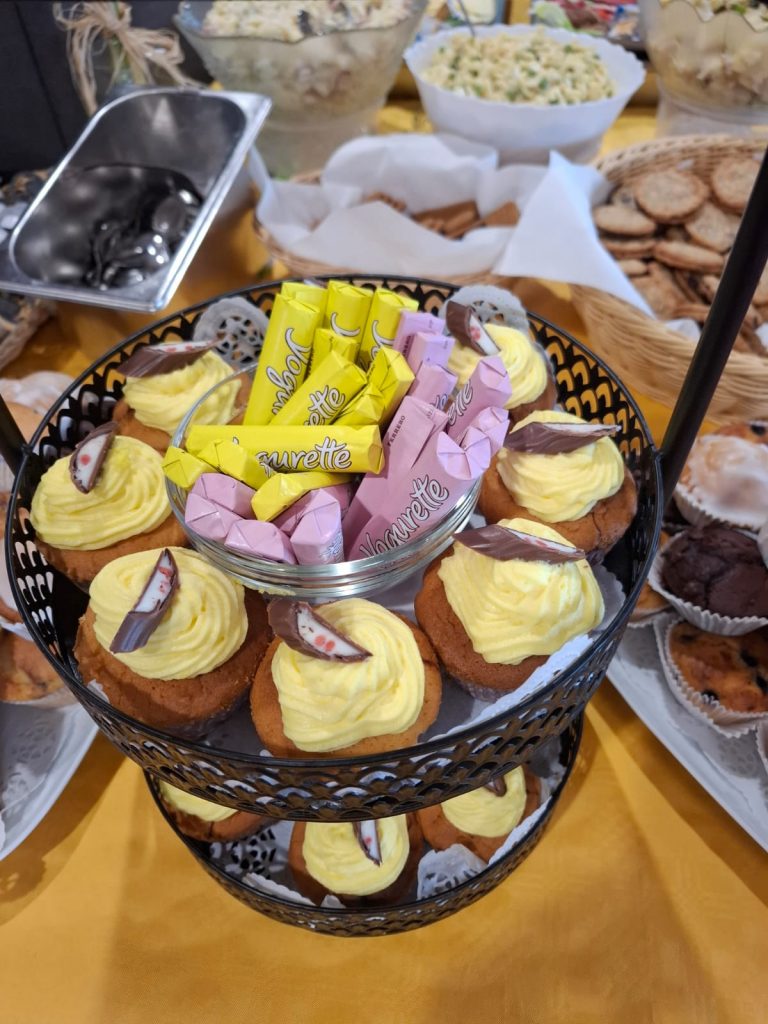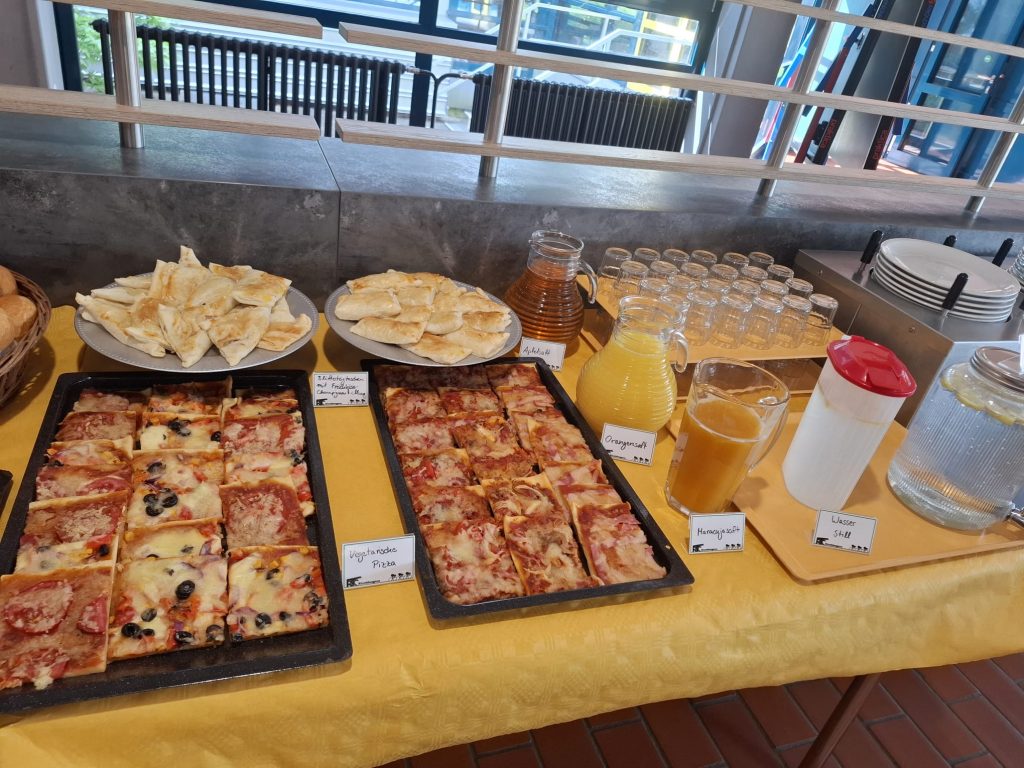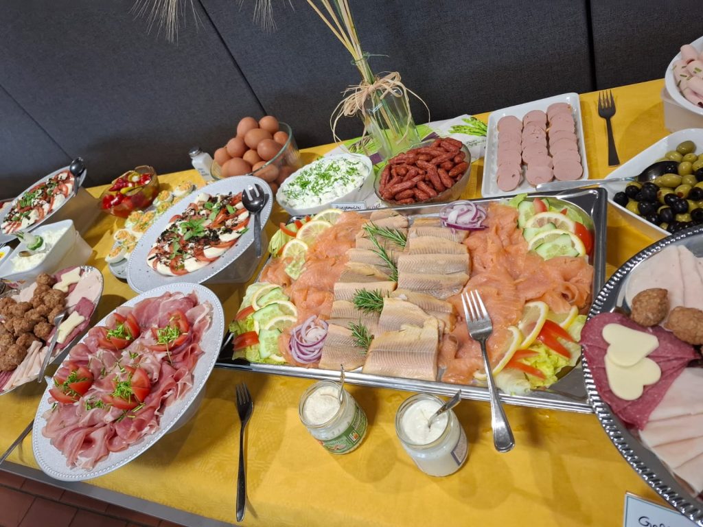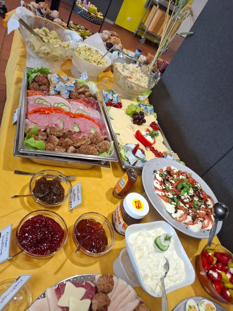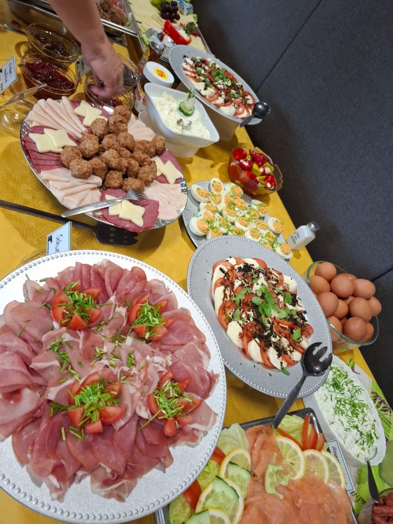 Am Veranstaltungstag selber wurde von zahlreichen Helfern ein umfangreiches Brunchbuffet vorbereitet. Von gesundem Obst und Gemüse über süße Leckereien wie Muffins und Fruchtaufstriche, Brötchen, Rührei, Käse und Wurstplatten, bis hin zu Fisch, Frikadellen und selbstgemachten Salaten – für jeden sollte etwas dabei sein.